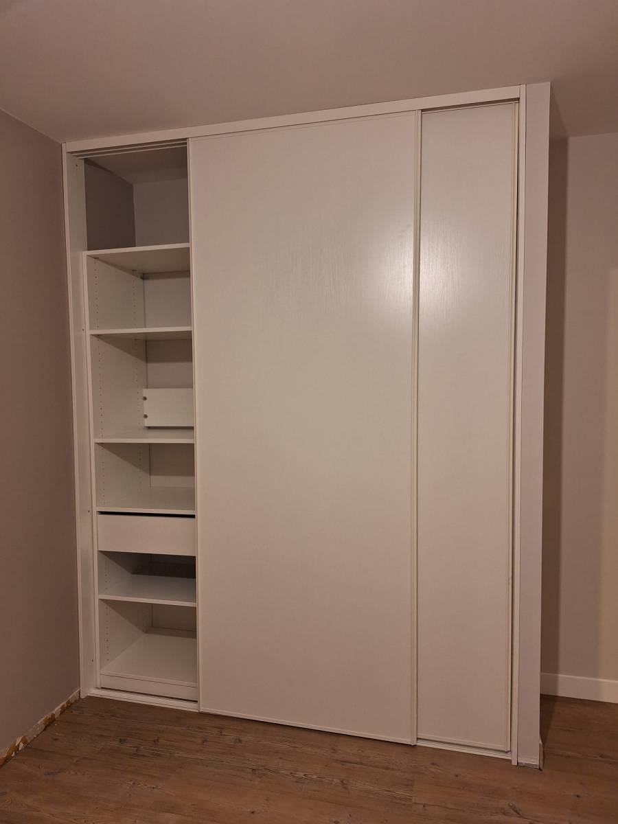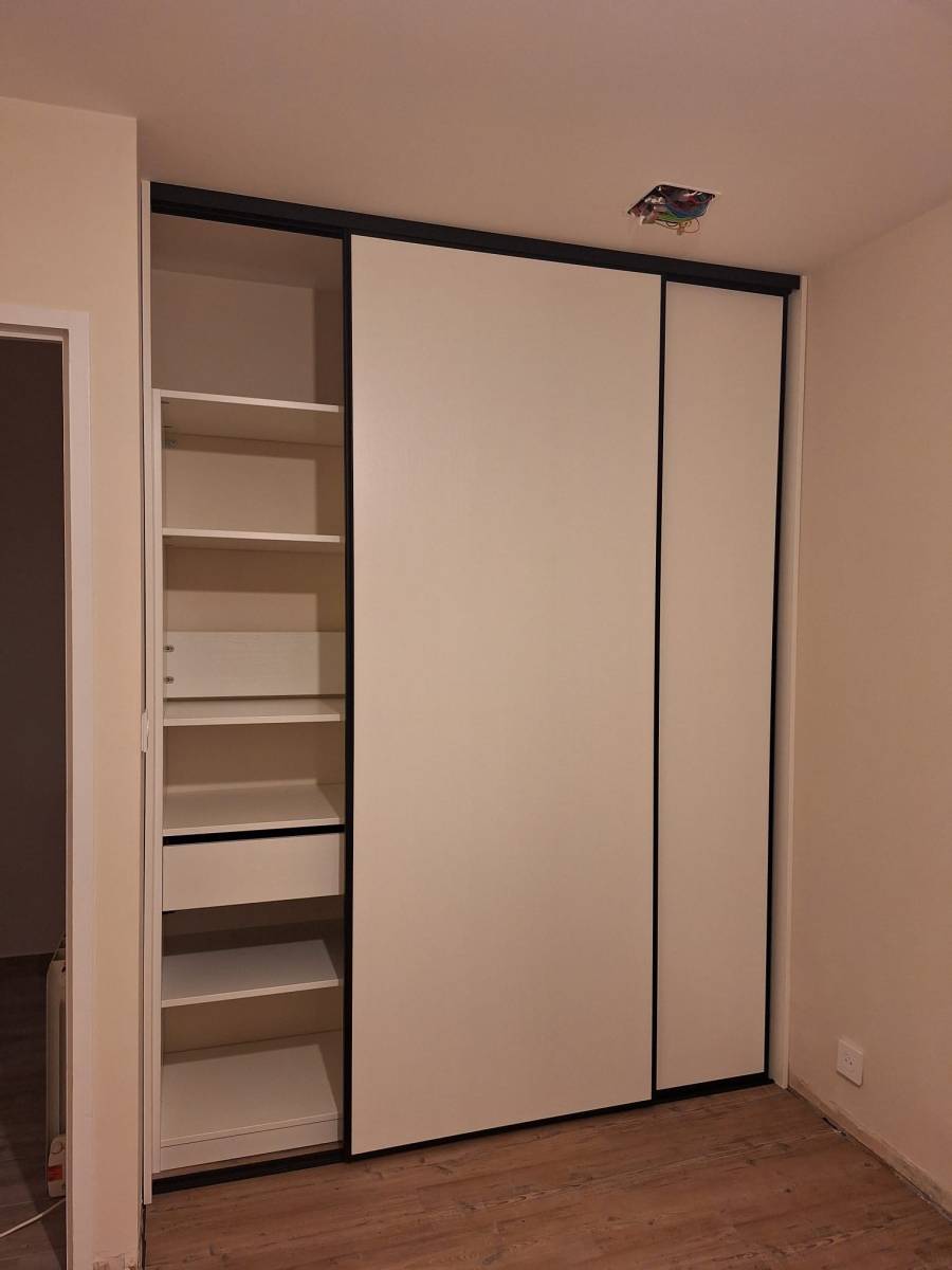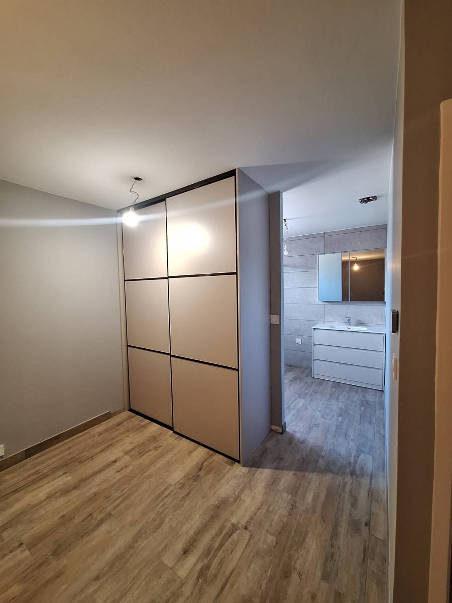 Pour ce projet, nous avons procédé à l’installation de placards dans les chambres avec des finitions soignées. Chaque m² a été rentabilisé grâce à des façades coulissantes élégantes (profils noirs ou blancs selon l'ambiance) ouvrant sur des intérieurs entièrement personnalisés : étagères, tiroirs et penderies. La création du dressing et de la salle de bain parentale permet de créer une véritable suite privée, où le rangement devient un élément de décoration à part entière.