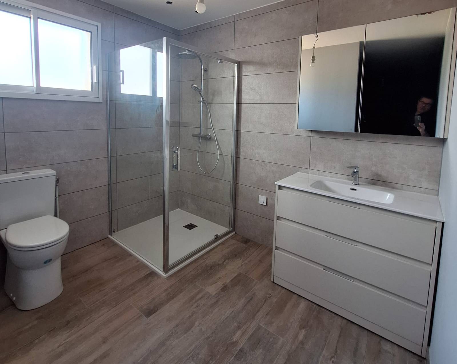 L'expertise de BCL Création s’exprime également dans les pièces d'eau. Nous avons réalisé la salle de bain parentale ainsi que la salle de bain principale de la maison. Qu'il s'agisse de douches à l'italienne spacieuses avec parois vitrées, de meubles vasques suspendus aux lignes épurées ou de faïences murales décoratives, chaque détail a été pensé pour le confort quotidien. Nos solutions intègrent des matériaux résistants et des designs contemporains, comme le prouvent les finitions bois et béton minéral visibles sur nos réalisations.