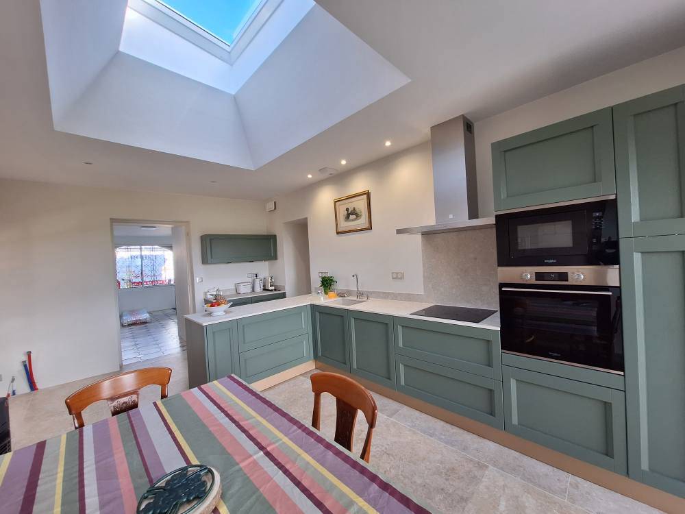Dans une magnifique maison ancienne rénovée à Soulignac, au cœur de l’Entre-Deux-Mers, BCL Création a réalisé une installation cuisine authentique campagne chic qui met en valeur le charme du bâti tout en apportant une touche de modernité discrète.