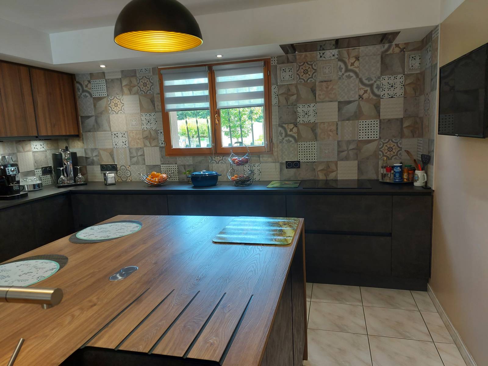 Ils ont optés pour une hotte de plafond permettant d'avoir une cuisson sur leur ilot central, n'encombrant pas la cuisine et leur ilot central.